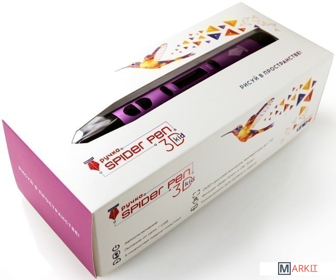 Комплектация - 3D ручка Spider Pen KID;- Блок питания 5V 2A;- USB провод;- 10 метров пластика в комплекте UNID KID (pcl);- трафарет;- Инструкция по эксплуатации.