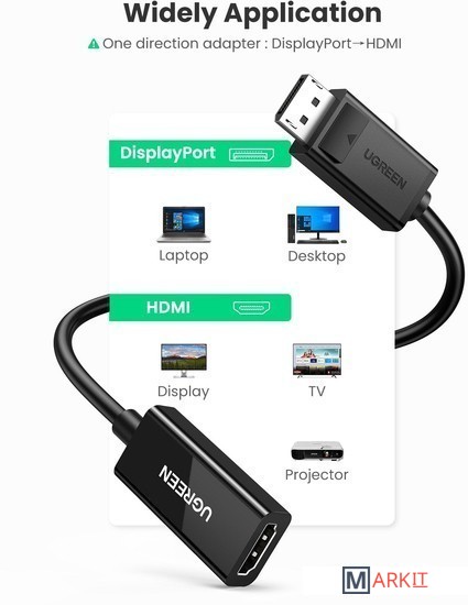 Markit » Кабели, адаптеры, разветвители » Адаптер Ugreen MM137 70694 HDMI - DisplayPort (0.25 м)