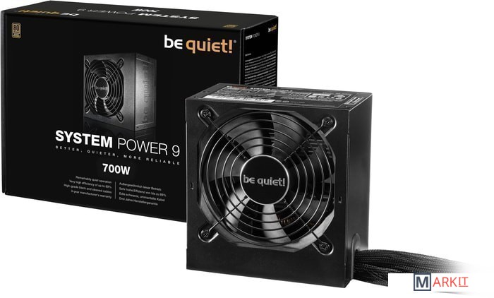 be quiet! System Power 9 700W предлагают ориентированным на конкурентную цену сборщикам ПК знаменитую надежность и тишину работы be quiet!Высокая стабильность благодаря двум мощным 12В линиямТехнология DC-to-DC для точной регулировки напряженийПоддержка нескольких видеокарт благодаря четырем разъемам PCIe120мм вентилятор с изменяемой в зависимости от температурного режима скоростью вращения снижает шум системыУровень потребления энергии в режиме ожидания (Standby) составляет менее 0.13ВтЭффективность 80 PLUS® Bronze (до 89%)Привлекательные черные кабели в оплеткеПолный спектр систем защитСоответствие последним требованиям Intel® C6/C7, ErP и Energy Star 6.1