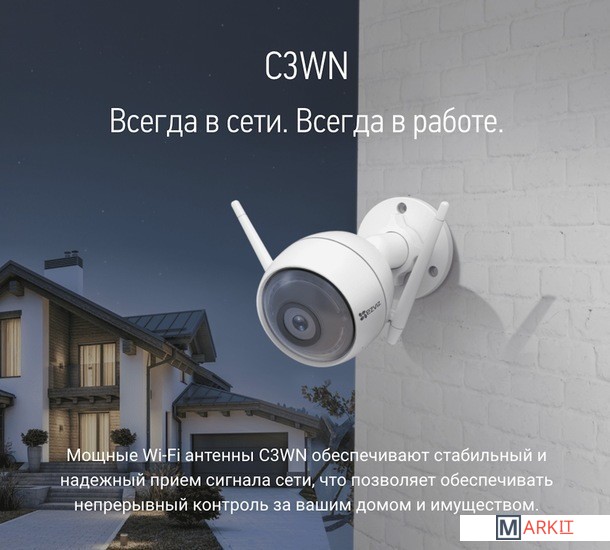 Мощные Wi-Fi антенны С3WN обеспечивают стабильный и надежный прием сигнала сети, что позволяет обеспечивать непрерывный контроль за вашим домом и имуществом. Камера C3WN с инфракрасным освещением обеспечивает четкое изображение видео во время ночной съемки на расстояние до 30 метров.