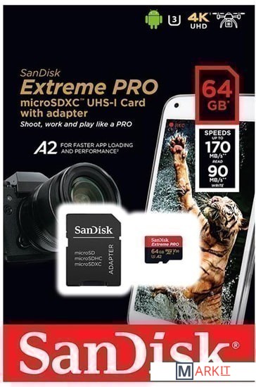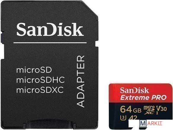 Markit » Карты памяти » Карта памяти SanDisk Extreme PRO SDSQXCY-064G-GN6MA microSDXC 64GB (с адаптером)
