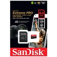 Карта памяти SanDisk Extreme PRO SDSQXCY-064G-GN6MA microSDXC 64GB (с адаптером) Код: 95409