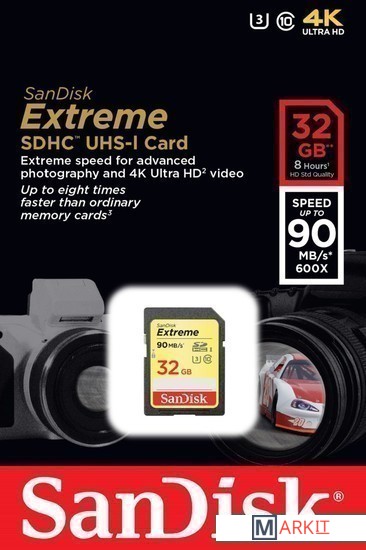 Карта памяти SanDisk Extreme SDHC Class 10 32GB [SDSDXNE-032G-GNCIN] Код: 96189