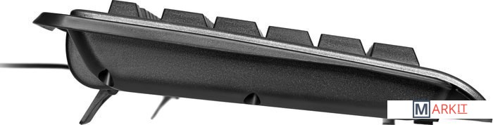 Полноразмерная клавиатура выполнена в оригинальном дизайне, сочетает в себе классический черный и сдержанный серый цвета и имеет фактурную конструкцию. Небольшая подставка под запястья добавит комфорта во время длительного использования, а 10 дополнительных мультимедиа клавиш улучшат функциональность.
