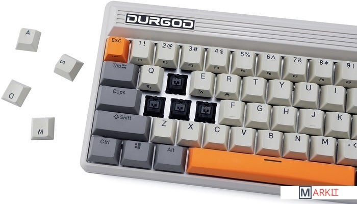 КЛАВИАТУРА БЕЗ КИРИЛЛИЦЫТип: линейныйСила нажатия: 45 грамм (средние)Длина пути: 3.4 мм (1.2 мм до срабатывания)Помимо подключения через стандартный кабель USB клавиатура может работать в одном из двух беспроводных режимов — Bluetooth 5.0 или беспроводном соединении 2.4G, обладающем меньшей, по сравнению с Bluetooth, задержкой. Переключение между режимами осуществляется с помощью специального слайдера в верхней правой части. Благодаря беспроводному подключению вы также можете подключить клавиатуру к устройствам на iOS или Android.Два кабеля в комплекте - Вы можете использовать как USB Type-C, так и старый добрый USB Type-A.Мультимедиа и дополнительные FN функции - Клавиатура поддерживает сочетания клавиш для регулировки громкости и управления музыкой. Также имеется возможность отключить кнопку Windows.Durgod Zeus Engine позволяет создавать макросы. Можно создать свои мультимедиа, функциональные макросы и многое другое. ПО не поддерживается на Mac OS.Прочные регулируемые ножки позволят немного приподнять клавиатуру и изменить её угол наклона для более комфортной печати, а их прорезиненное дно не даст клавиатуре сдвинуться с места.Функция Full N-key Rollover по USB (NKRO) - Позволяет нажимать одновременно неограниченное количество клавиш. Для печати идеально подойдет как 6KRO, так и NKRO, независимо от вашей скорости. Для игр NKRO будет плюсом и неважно, нажимаете ли вы больше 6 кнопок или нет, поскольку, играя в любую игру, вы можете случайно нажать пару лишних клавиш и из-за этого клавиатура может не среагировать на нажатие, которые вы хотели совершить изначально. Осторожно, старые BIOS-ы могут не реагировать на клавиатуру из-за NKRO.