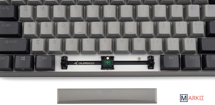 КЛАВИАТУРА БЕЗ КИРИЛЛИЦЫТип: кликающийСила нажатия: 60 грамм (несмотря на вес, средние)Длина пути: 4 мм (2.2 мм до срабатывания)Настраиваемая белая подсветка - Поддерживает 11 режимов, регулировку яркости, скорости и направления анимации.Клавиатура поддерживает сочетания клавиш для регулировки громкости и управления музыкой. Также имеется возможность отключить кнопку Windows.Два кабеля в комплекте - Вы можете использовать как USB Type-C, так и старый добрый USB Type-A.Durgod Zeus Engine позволяет создавать макросы. Можно создать свои мультимедиа, функциональные макросы и многое другое. ПО не поддерживается на Mac OS.Канавки для укладки кабеля - Расположены с обратной стороны клавиатуры и позволяют выводить кабель в трёх направлениях — слева, справа и посередине.Двойные регулируемые ножки предоставляют целых три варианта угла наклона клавиатуры для более комфортной печати, а их прорезиненное дно не даст клавиатуре сдвинуться с места.Позволяет нажимать одновременно неограниченное количество клавиш. Для печати идеально подойдет как 6KRO, так и NKRO, независимо от вашей скорости. Для игр NKRO будет плюсом и неважно, нажимаете ли вы больше 6 кнопок или нет, поскольку, играя в любую игру, вы можете случайно нажать пару лишних клавиш и из-за этого клавиатура может не среагировать на нажатие, которые вы хотели совершить изначально. Осторожно, старые BIOS-ы могут не реагировать на клавиатуру из-за NKRO.