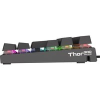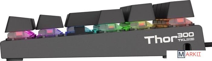 Thor 300 TKL RGB расширяет Ваши возможности в виртуальных играх. Высококачественные механические переключатели с отличными характеристиками позаботятся о высокой производительности в Вашей любимой игре. Различные решения, такие как органайзер кабеля в сочетании с отличным дизайном и подсветкой RGB способствуют появлению клавиатуры, которая не только освобождает Ваш потенциал, но и радует глаз требовательного пользователя.Основой Thor 300 TKL RGB являются высококачественные переключатели Outemu Red, которые обеспечивают лучший опыт в сложных играх. Нам нужно всего 45 грамм давления, чтобы активировать клавишу, и это с отличным временем отклика 8 мс дает вам лучшую производительность в игре. Клавиши имеют исключительный срок службы - до 50 миллионов кликов, поэтому они будут служить Вам в течение многих лет.Она впечатляет своим прочным алюминиевым корпусом, который был дополнен феноменальной подсветкой RGB, доступной в 25 режимах, включая PRISMO. Thor 300 TKL RGB напоминает, что мы имеем дело не только с отличным спецификацией, но и с аппетитным дизайном, который впечатляет, подбадривает и мотивирует продолжать бороться и улучшать свои навыки.Благодаря мультимедийным клавишам, Thor 300 TKL RGB улучшает удобство повседневной работы на компьютере. Благодаря различным функциям, расположенным на клавишах F1-F12, у Вас есть легкий доступ к популярным приложениям, таким как калькулятор или почта. Вы также удобно можете управлять мультимедиа - плавно менять текущую песню и настраивать громкость даже во время игры.N-KEY Rollover обеспечивает отличное считывание без помех даже при нажатии всех клавиш одновременно. Thor 300 TKL RGB не ограничивает Вас в техническом плане и позволяет запускать мощные комбо и различные комбинации кнопок, которые Вы только пожелаете. Полный Anti-Ghosting.