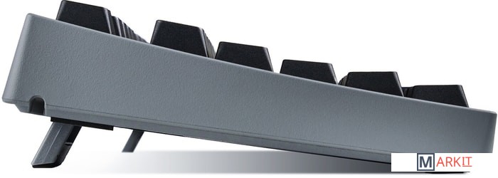 КЛАВИАТУРА БЕЗ КИРИЛЛИЦЫТип: кликающийСила нажатия: 60 грамм (несмотря на вес, средние)Длина пути: 4 мм (2.2 мм до срабатывания)Данная модель имеет темную цветовую схему, расцветка обязательно понравится фанатам классики. Клавиатура собрана добротно и монолитно, а сочетание высококачественных double-shot PBT клавиш с переключателями Cherry MX и звукопоглощающей подложкой позволяет сделать печать на клавиатуре максимально тихой (насколько это возможно для механики). Mini-USB порт спрятан в центре под корпусом, а на самой клавиатуре имеются центральная и две боковые канавки под кабель.Клавиатура поддерживает сочетание клавиш для регулировки громкости и управления музыкой, также имеется возможность переключения между 6KRO и NKRO.DIP-переключатели на задней панелиДают возможность поменять местами функции кнопок Ctrl и Caps Lock, Windows и Alt, Windows и Fn или отключить Windows.Звукопоглощающая подложкаПоглощает звуки при нажатии, делая процесс печати более тихим по сравнению с обычными механическими клавиатурами.Низкопрофильные клавиши Step-Sculpture2Данные клавиши заметно ниже и имеют оптимальный угол наклона, из-за чего, по отзывам, печатать приятнее и комфортнее, чем на более высоких клавишах.Клавиатура совместима с Mac OSFN-слой работает (кроме клавиш F6, F8, F9), а поменять местами клавиши-модификаторы можно в системных настройках. Проверено с MAC OS 10.13Функция Full N-key Rollover по USB (NKRO)Позволяет нажимать одновременно неограниченное количество клавиш. Для печати идеально подойдет как 6KRO, так и NKRO, независимо от вашей скорости. Для игр NKRO будет плюсом и неважно, нажимаете ли вы больше 6 кнопок или нет, поскольку, играя в любую игру, вы можете случайно нажать пару лишних клавиш и из-за этого клавиатура имеет шанс не среагировать на нажатие, которое вы хотели совершить изначально. Имеется возможность переключения между NKRO и 6KRO через FN сочетания.