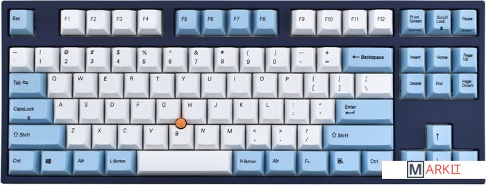 Тип: тактильныйСила нажатия: 65 грамм (тяжелые)Длина пути: 4 мм (2 мм до срабатывания)Данная модель представлена в тёмно-синем окрасе с белыми и светло-голубыми клавишами, расцветка выглядит свежо и воздушно. Клавиатура собрана добротно и монолитно, а сочетание высококачественных PBT клавиш с переключателями Cherry MX и звукопоглощающей подложки позволяет сделать печать на клавиатуре максимально тихой (насколько это возможно для механики). Mini-USB порт спрятан в центре под корпусом, а на самой клавиатуре имеются центральная и две боковые канавки под кабель.Уникальная для клавиатур Leopold фишка: теперь, если у вас нет под рукой мыши, клавиатура сможет взять её обязанности на себя. Указательный стик позволяет перемещать курсор, а для левой и правой кнопок мыши с обеих сторон пробела расположились специальные клавиши.Клавиатура поддерживает сочетание клавиш для регулировки громкости и управления музыкой, также имеется возможность переключения между 6KRO и NKRO.DIP-переключатели на задней панелиДают возможность поменять местами функции кнопок Ctrl и Caps Lock, Windows и Alt, Windows и Fn или отключить Windows.Звукопоглощающая подложкаПоглощает звуки при нажатии, делая процесс печати более тихим по сравнению с обычными механическими клавиатурами.Низкопрофильные клавиши Step-Sculpture2Данные клавиши заметно ниже и имеют оптимальный угол наклона, из-за чего, по отзывам, печатать приятнее и комфортнее, чем на более высоких клавишах.Клавиатура совместима с Mac OSFN-слой работает (кроме клавиш F6, F8, F9), а поменять местами клавиши-модификаторы можно в системных настройках. Проверено с MAC OS 10.13Функция Full N-key Rollover по USB (NKRO)Позволяет нажимать одновременно неограниченное количество клавиш. Для печати идеально подойдет как 6KRO, так и NKRO, независимо от вашей скорости. Для игр NKRO будет плюсом и неважно, нажимаете ли вы больше 6 кнопок или нет, поскольку, играя в любую игру, вы можете случайно нажать пару лишних клавиш и из-за этого клавиатура имеет шанс не среагировать на нажатие, которое вы хотели совершить изначально. Имеется возможность переключения между NKRO и 6KRO через FN сочетания.