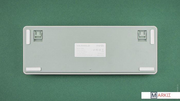 Varmilo — яркая звезда на небосводе китайских производителей клавиатур. Смазанные стабилизаторы, ручная сборка, эстетичный дизайн — каждая клавиатура Varmilo как произведение искусства. Дизайн Minilo вдохновлен работами итальянского художника Джорджио Моранди: сочетает в себе оттенки бежевого, серо-голубого и зеленого.Беспроводная клавиатураПоддержка Bluetooth 5.0 соединения позволит вам скинуть с себя оковы проводного рабства.Встроенный аккумуляторВстроенный аккумулятор на 3000 мАч позволяет клавиатуре работать в беспроводном режиме более 20 дней.Doubleshot ABS кейкапыПриятные и гладкие на ощупь, а символы никогда не сотрутся — ведь они отлиты из пластика.Шумо- и виброизоляцияВнутри две подложки: в корпусе + между платой и плейтом. Они поглощают звуки и вибрации при нажатии и делают процесс печати тише.Если тишина имеет большое значение, рекомендуем заменить заводскую шумоизоляцию на нашу из бипласта.Мягкий на ощупь корпусСделан из пластика, напоминающий покрытие «soft-touch» — шелковистый и приятный.Стабилизаторы, смазанные на заводеСочетание стабилизаторов и смазки делает ход клавиш enter, space, shift, backspace равномерным и плавным.Белая подсветкаИмеет 3 режима: выключена, статичное свечение, эффект затухания, и 4 уровня яркости.Режимы меняются через FN + [ и ], FN + стрелка вверх/вниз меняет яркость в режиме статичного свечения и скорость в режиме затухания.Вместо заводской белой подсветки можно установить кастомную подсветку другого цвета.Сменные клавишиВ комплекте есть дополнительные кейкапы для пробела, Esc, “~” и Enter.Регулируемые ножкиПозволят приподнять клавиатуру и изменить угол наклона для комфортной печати, а прорезиненный низ не даст клавиатуре сдвинуться с места. Мультимедиа и дополнительные FN функцииКлавиатура поддерживает сочетания клавиш для регулировки громкости и управления музыкой. Также можно отключить кнопку windows и поменять клавиши Fn и Win/Ctrl и Caps Lock местами.Функция Full N-key Rollover по USB (NKRO)Позволяет нажимать одновременно неограниченное количество клавиш. Удобно в игре, когда нужно прожимать многокнопочные комбинации.Осторожно, старые BIOS-ы могут не реагировать на клавиатуру из-за NKRO.Если ALT и WIN поменялись местами или сбились назначения клавиш:Зажмите Fn + D + Backspace, пока не заморгает CapsLock (Сбросить настройки клавиш)Fn + D (Сброс до заводских настроек)