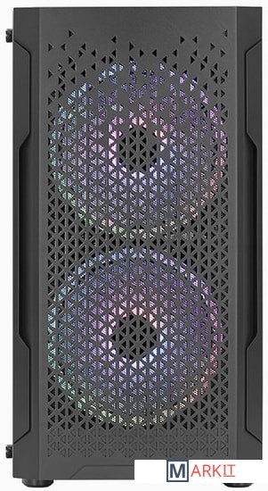 Вентиляционные отверстия на передней панели увеличивают поток воздуха и улучшают вентиляциюБоковая панель из закаленного стекла позволяет рассмотреть все компоненты системыКрепления для вентиляторов на отсеке для блока питания позволяют установить до 2 х 120-мм вентиляторов, которые обеспечивают дополнительное охлаждение видеокарты