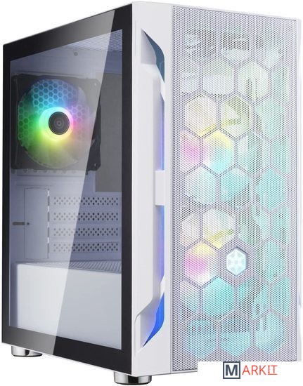 ■ Оснащён тремя вентиляторами 120 мм с ARGB-подсветкой и контроллером ARGB■ Конструкция из стальной сотовой сетки, обеспечивающая превосходный поток воздуха для охлаждения внутренних компонентов■ Грамотно разработанный интерьер обеспечивает достаточно места для большинство видеокарт и нескольких вариантов охлаждения■ Регулируемый отсек для дисков обеспечивает гибкость в размерах блока питания и пространства для прокладки кабелей■ Порты I/O включают 1 x USB 3.0, 2 x USB 2.0, 1 x Аудио и 1 x Микрофон■ Съёмные фильтры сверху и фронт облегчают очистку от пыли■ Слегка тонированная боковая панель из закаленного стекла и стальная сотовая конструкция передней панели для увеличения потока воздуха. Нет необходимости жертвовать производительностью ради эстетики
