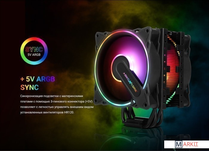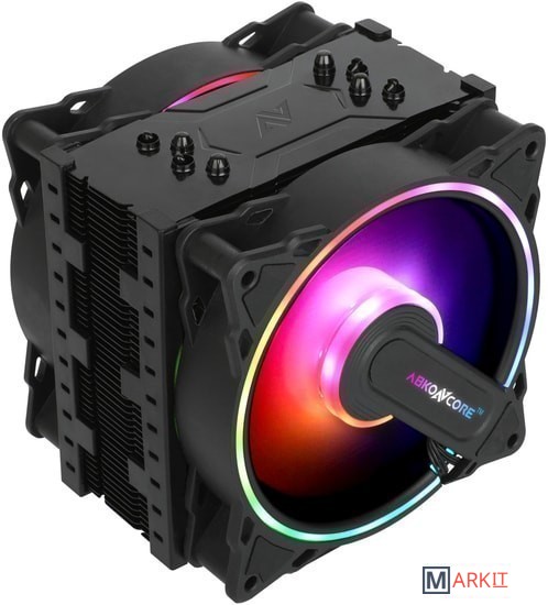 Кулер башенного типа Abkoncore Coolstorm T404B Dual SYNC с двумя вентиляторами и синхронизируемой ARGB подсветкой подходит для всех современных процессорных сокетов и обеспечивает отведение тепла в пределах 170 Вт.