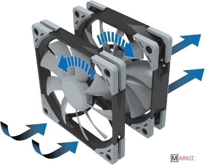 Максимальный воздушный поток 51.17 CFM  (вентилятор в середине, внешний - 33,86 CFM)