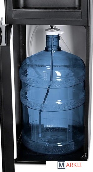Напольный кулер с нижней загрузкой бутыли и поворотными кранами подачи воды. Необычный внешний вид кранов, стильный корпус полностью черного цвета и нижний отсек, в котором полностью скрывается бутыль, позволяют эффектно вписать этот кулер в современный интерьер с продуманным дизайном.Модель с электронным охлаждением, со стандартной производительностью. Есть индикация работы аппарата, нагрева, охлаждения и необходимости заменить бутыль. Три крана подачи воды: горячей, холодной и комнатной температуры. Для подачи воды нужно повернуть соответствующий кран, для остановки подачи — вернуть его в исходное положение.