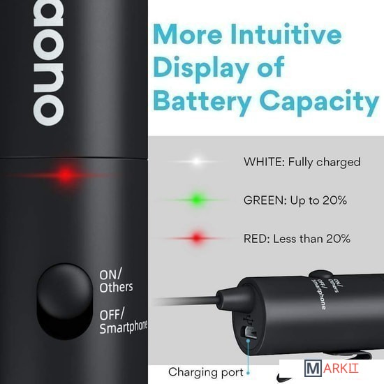вкл/выкл (выполняет функцию переключения режимов работы между смартфоном и видеокамерой) |