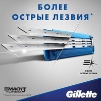 Сменные кассеты к мужским бритвам Gillette MACH3 Turbo оснащены 3 лезвиями прочнее стали, которые дольше сохраняют остроту.Сменные кассеты Gillette MACH3 Turbo с более острыми, быстро режущими лезвиями Turbo (первые 2 лезвия по сравнению с MACH3) рассчитаны на 15 процедур комфортного бритья.Эти бритвы Gillette оснащены долговечной гелевой полоской, которая обеспечивает превосходное скольжение бритвы.Защитный микрогребень Skin Guard бритвы MACH3 Turbo растягивает кожу и подготавливает волоски к срезанию.