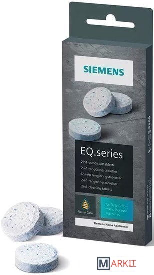 Чистящие таблетки для кофемашин эспрессо Siemens. Благодаря регулярной очистке блока фильтра, аромат кофе остается хорошим, а срок службы прибора значительно увеличивается. Оптимизирован для программы очистки кофе-машины.