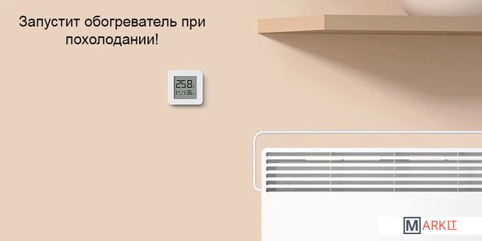 Максимально простое устройство. Датчик измеряет температуру и влажность воздуха у вас дома. Все показания видны на маленьком экранчике. В комплекте есть скотч для крепления на стену, шкафчик или куда вам захочется.Наличие батарейки CR2032 в комплекте зависит от партии поставки.У датчика есть Bluetooth. С помощью него датчик синхронизируется с Mi Home на смартфоне, где рисуются красивые графики погоды в доме. Можно посмотреть статистику за день, месяц и полгода. Но работает только в радиусе действия Bluetooth.Чтобы просматривать показания температуры и влажности через интернет, вам понадобится хаб для умного дома. Он будет все время держать связь с датчиком. Благодаря такой связке открываются возможности для домашней автоматизации. Например, чтобы при снижении температуры или влажности автоматически включался увлажнитель или обогреватель дома.