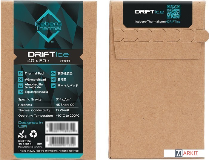 Markit » Системы охлаждения » Термопрокладка Iceberg Thermal DRIFTIce 80x40x2 мм DRIFTICE20-A0A