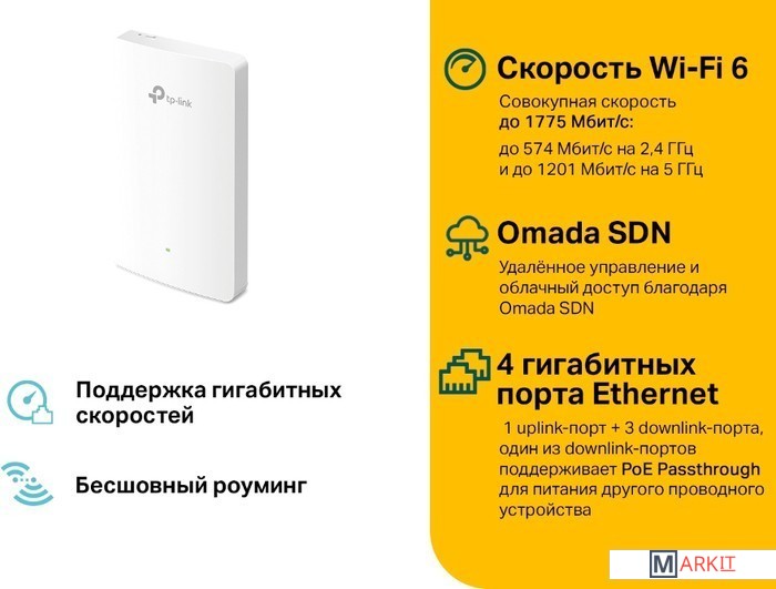 Точка доступа TP-Link EAP615-Wall Код: 451346