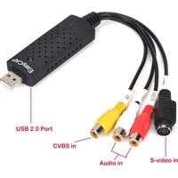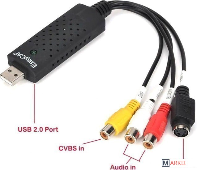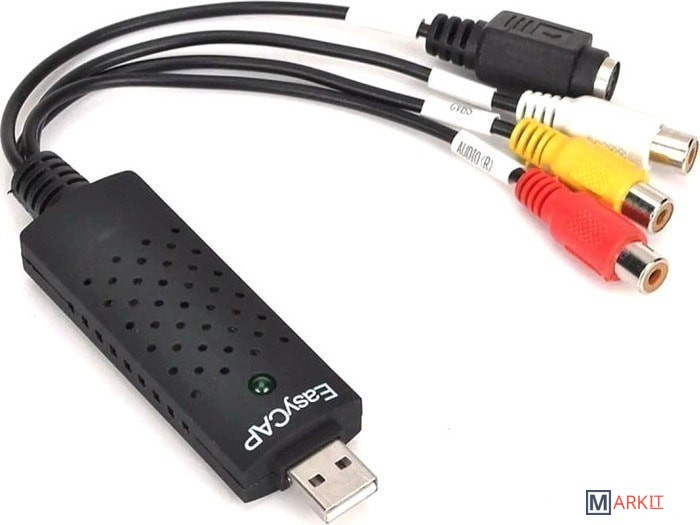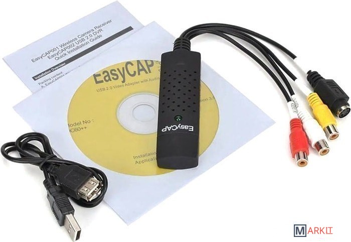 Устройство видеозахвата предназначено для подключения техники с видео/аудио входами RCA, S-Video к компьютеру. В основном используется для оцифровки видео кассет и подключения видеомагнитофонов, камер наблюдения и других устройств к компьютеру или ноутбуку, позволяет захватывать и оцифровывать видео и аудио сигнал напрямую через USB-порт без применения видеокарты.Характеристики:– Поддержка форматов NTSC, PAL, Video format.– Видеовход: один композитный RCA, один S-Video.– Аудиовход: стереозвук 2 RCA.– Поддерживает запись на диски: DVD+/-R/RW, DVD+/-VR и DVD-video.– Поддержка высококачественного видео разрешения NTSC: 720×480 30кд/с; PAL: 720×576 25кд/с.– Системные требования: Свободный порт USB 2.0; 600MB свободного места на диске для установки ПО; 4GB и более свободного места на диске для захвата видео и редактирования; Память: 256MB RAM; Дисплей: не менее 1024*768; Звуковая карта: совместима с Windows-Sound card.– ОС: Win 2000, Win 7/8/10, Win XP, Win Vista.– Не нуждается во внешнем питании.