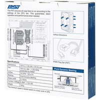 Вентилятор с поддержкой технологии PST от Arctic - возможность подключения цепочкой до 5 вентиляторов от одного 4pin разъема. Процессорный вентилятор должен быть последним в цепочке.