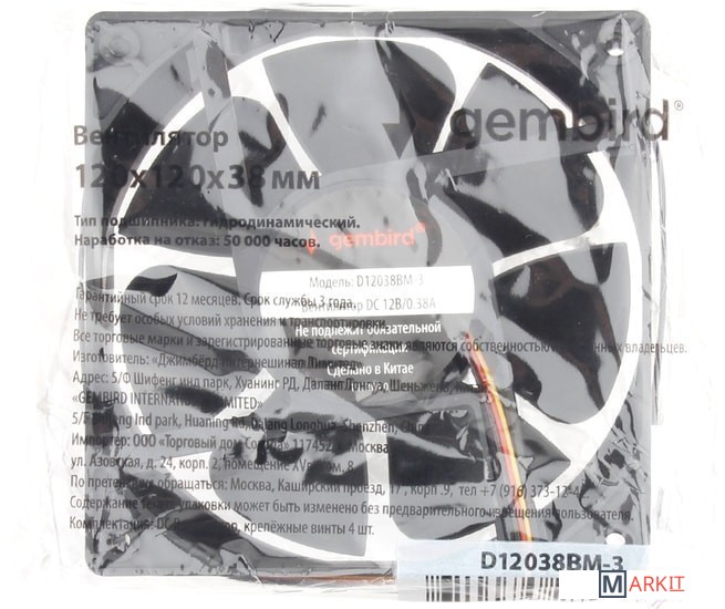 Markit » Системы охлаждения » Вентилятор для корпуса Gembird D12038BM-3