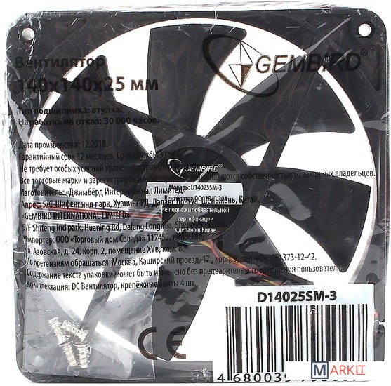 Markit » Системы охлаждения » Вентилятор для корпуса Gembird D14025SM-3